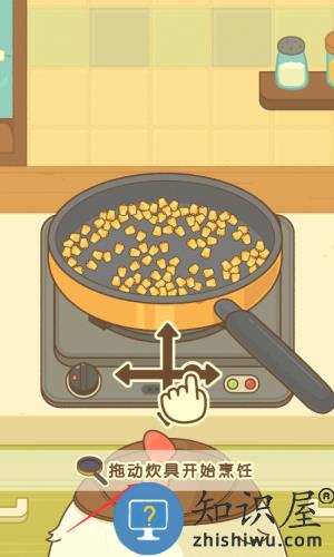 3、拖动炊具开始烹饪,制作金黄爆米花。