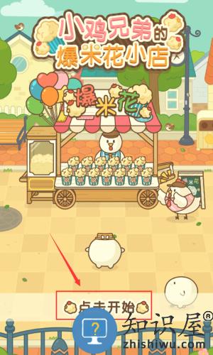 1、点击开始按钮,进入爆米花小店经营游戏。