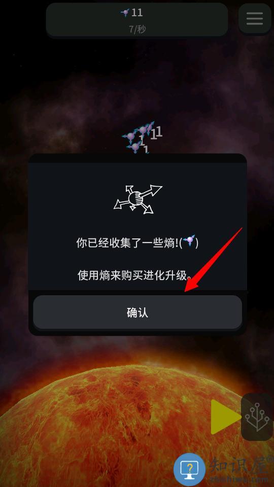 1、通过点击屏幕获取熵值资源推动生命进化进程。