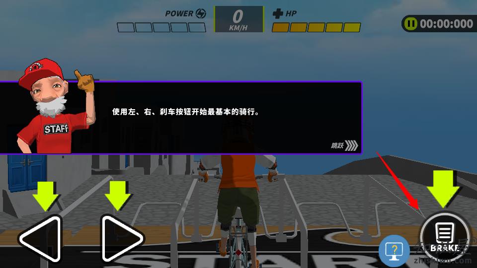 1、通过重力感应或触屏操控自行车保持平衡并避开障碍物。