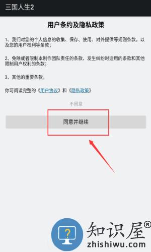 1、点击同意并继续按钮,确认隐私政策开始游戏。