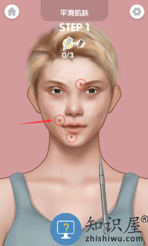 2、对准痘痘按压痤疮针,完成瑕疵处理步骤。