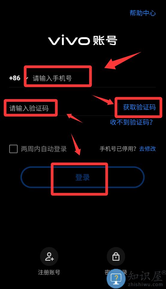 2、输入手机号码获取验证码并填写登录。