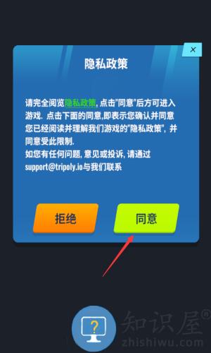 1、点击同意按钮,确认隐私政策开始游戏。