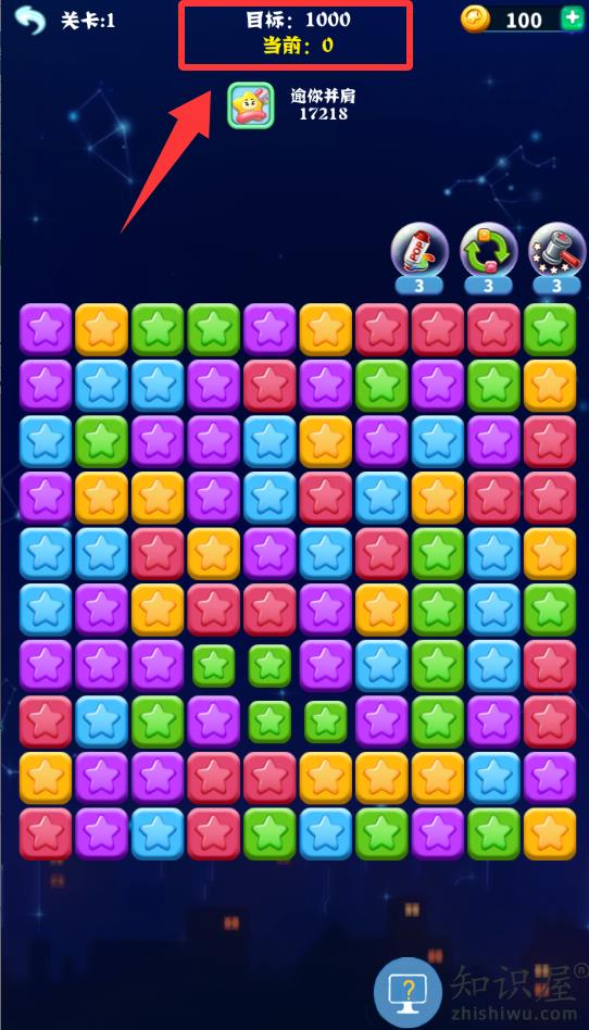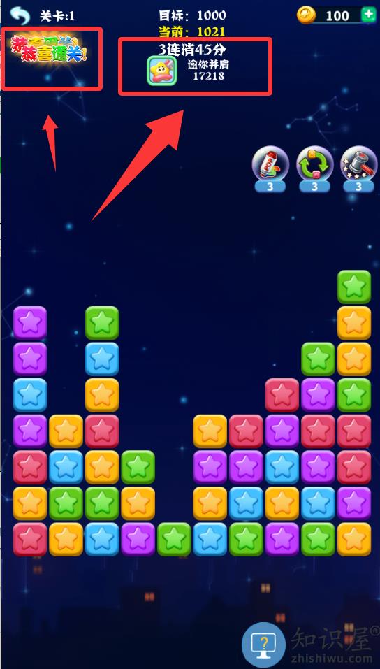 1、进入到游戏这关的目标分数是1000分。