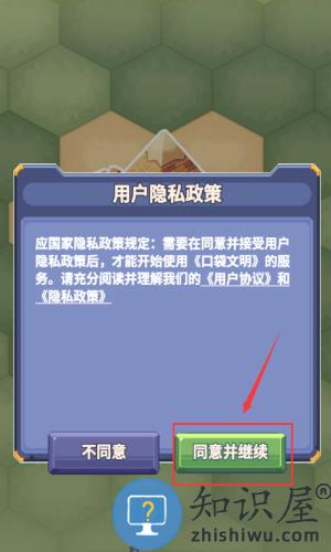 1、点击同意并继续按钮,确认隐私政策开始游戏。