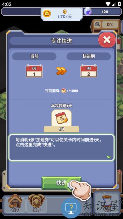 游戏的时间流逝不会自动,需要通过专注来获得加速卷使用。