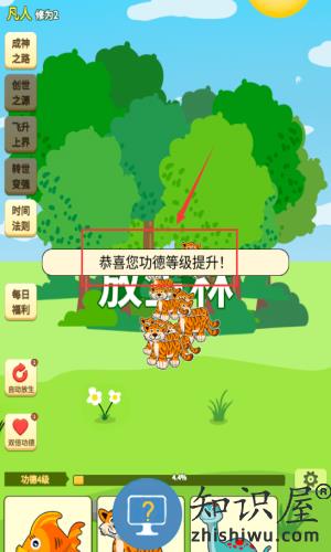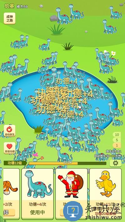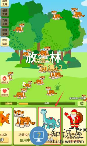 3、选择蓝色恐龙,每次放生获得四点功德。