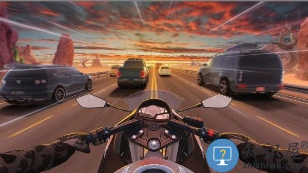 1、在游戏中你将驾驶你的摩托车行驶在川流不息的高速公路上,加速行驶!超速狂飙!