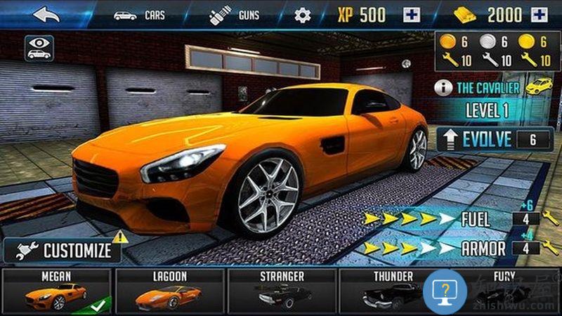 3.在激烈的死亡车赛中体验赏金射击任务。通过装备有导弹发射器和机关枪的装甲车破坏对手的汽车。