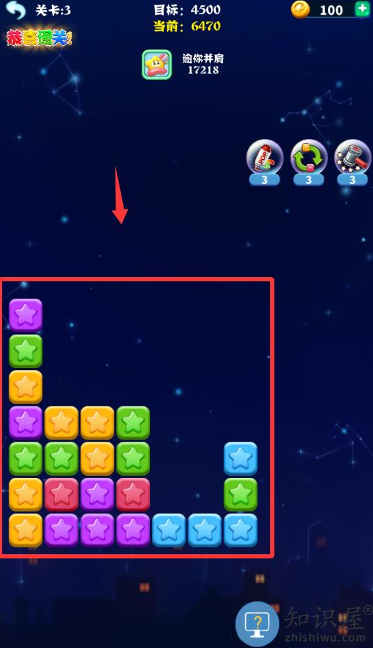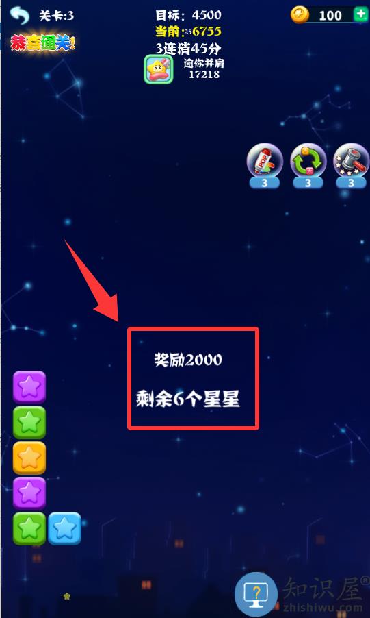 2、把这些剩余的星星都消灭掉就可以下一关了。