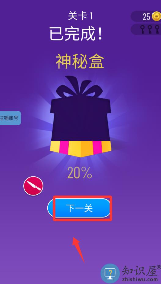 3、恭喜你过关了,点击红色框框里的下一关继续。