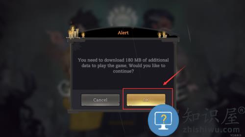2、点击OK按钮,确认下载一百八十兆游戏数据。