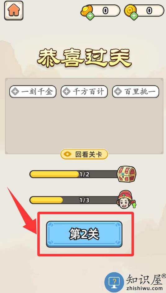 3、恭喜你,过关了,你好棒棒啊,点击第2关。