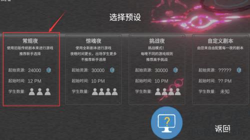 2、选择常规夜模式,开始新手推荐剧本游戏。