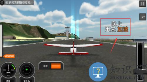 3、向上推动推杆,控制飞机加速滑行起飞。