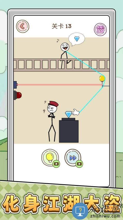 1、视觉风格简约明快,火柴人造型搭配动态光影效果,陷阱机关采用高对比度色彩标注,重要道具发出脉冲光效,确保关键信息清晰可辨。