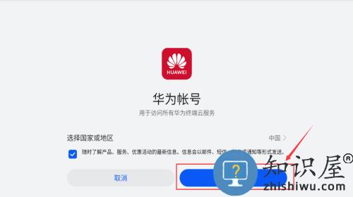 2、点击同意按钮,确认华为账号服务条款。