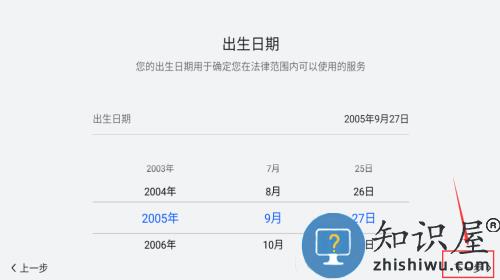 3、选择出生日期,点击下一步按钮确认。