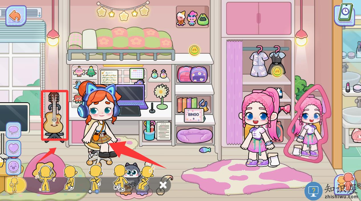 4、点击长按游戏页面里的吉他移动到人物哪里。