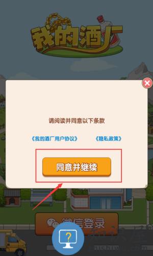 1、点击同意并继续按钮,确认用户协议开始游戏。