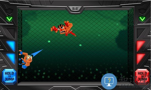 自己可以先不急着跳跃。当对手跳跃到红色区域所示处时,此时朝着对手跳跃过去必能将对手压在身下。