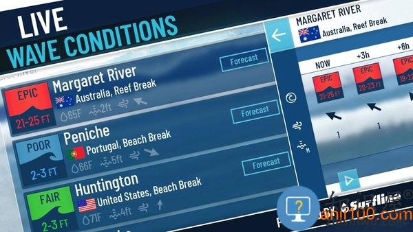 3、利用Surfline实时海洋数据体验动态变化的海浪条件。