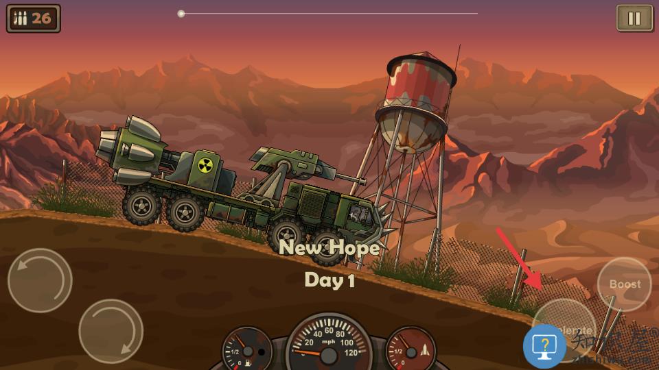 1、通过左右按键控制车辆平衡并加速冲刺突破僵尸群。