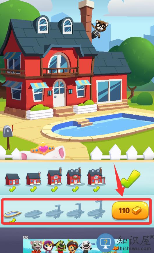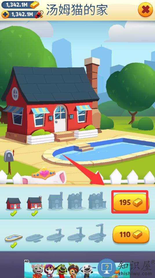 1、进入游戏界面点击汤姆猫的家升级房子。