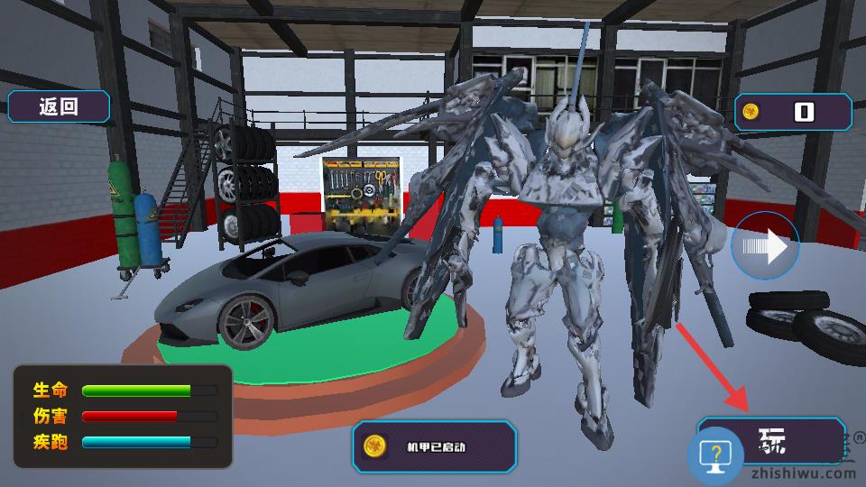 1、选择初始机甲开始作战,运用飞行冲刺快速到达指定地点。