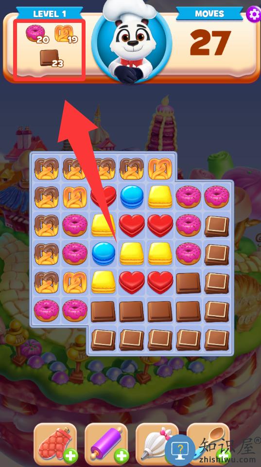 2、这关的任务是要消灭这3种颜色的饼干。