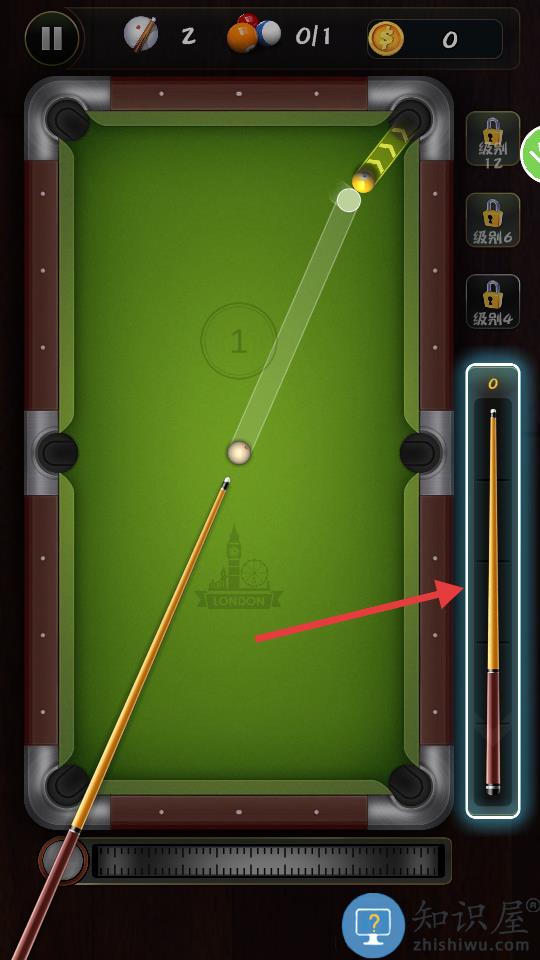 2、选择八球模式需按顺序击打全色或花色球,最终打进黑八获胜。