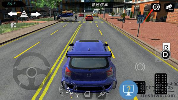 ·右下方按钮操控汽车,即可开始在公路上行驶起来了;