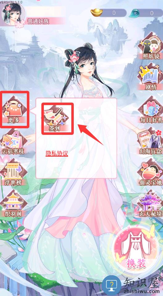 1、进入游戏界面点击更多里面的签到领取奖励。