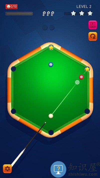·游戏的目的是在不同形状的板上使用台球杆将每个球敲成一个口袋
