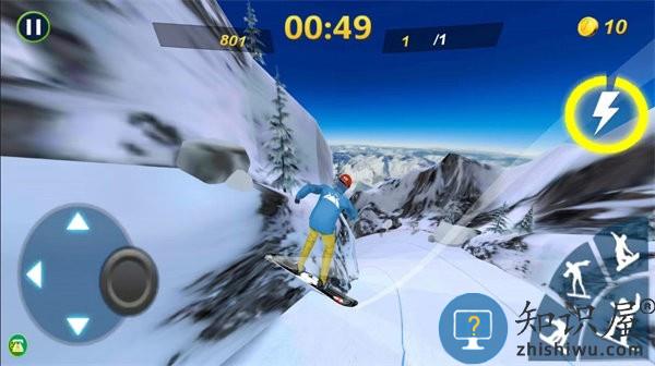 1、操控角色在庞大雪场中完成滑行与特技动作。