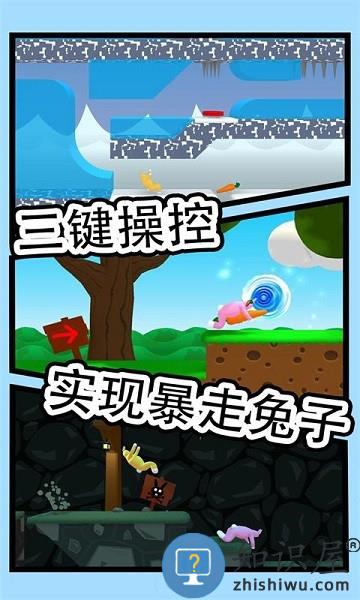在这个过程中,玩家需要控制兔子人越过悬崖,横跨地刺,一路躲避种种恶搞的机关陷阱!拾取萝卜可提升喷射次数哦!快来体验吧!