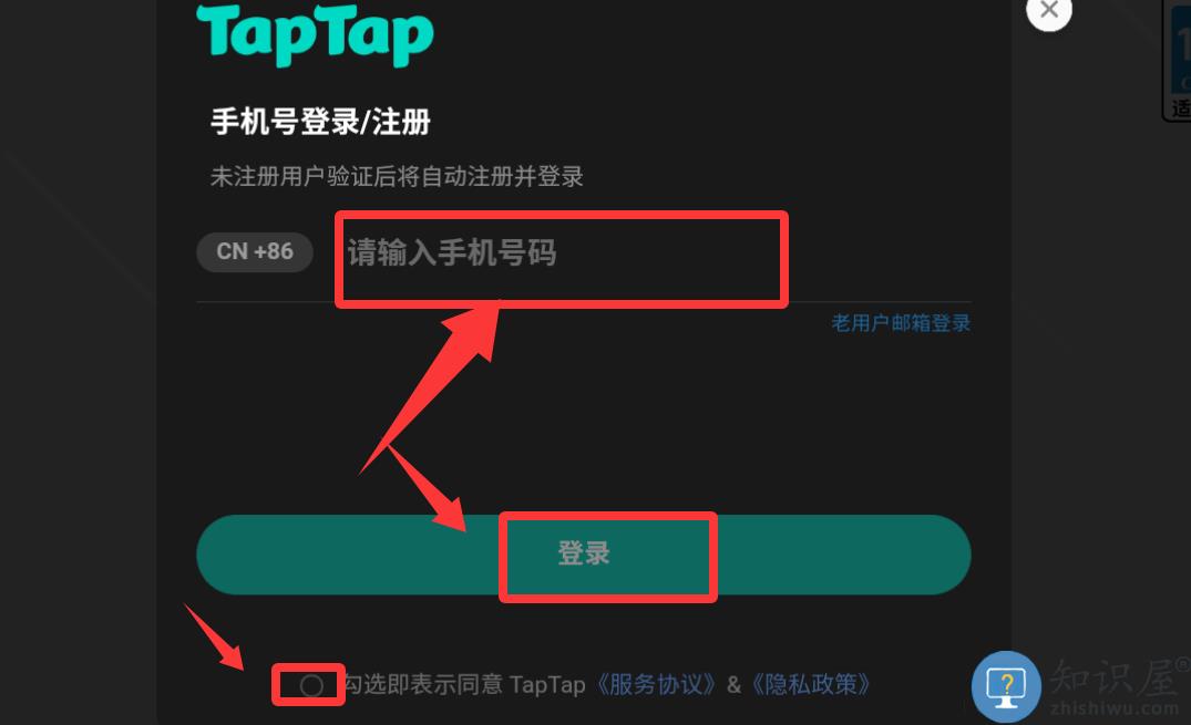 2、先在红色框框里打√然后输入电话号码获取验证码并登录。