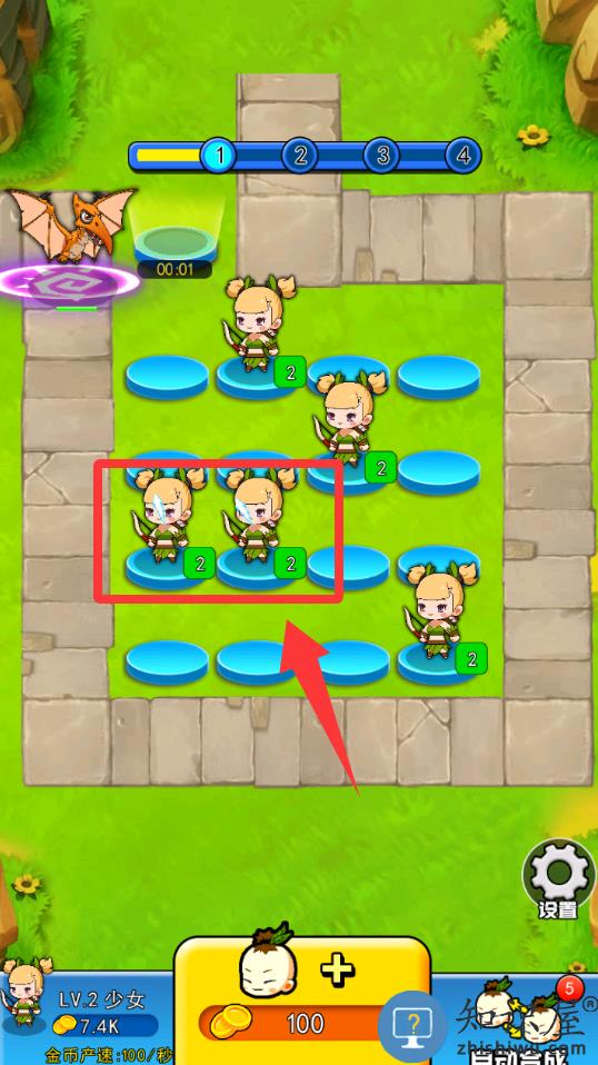 1、点击红色框框里的小孩移动合成一起变的更强。