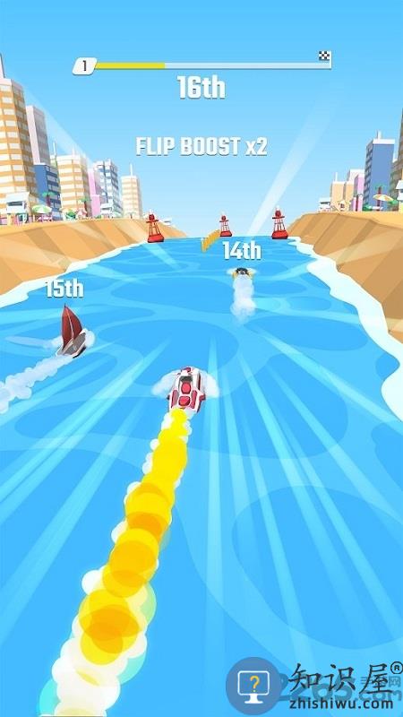 1、按住屏幕控制摩托艇,完成水上练习赛。