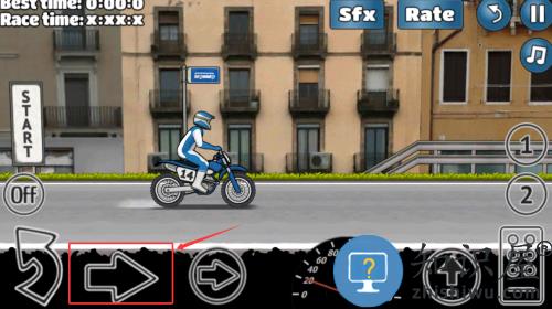3、点击右转按钮,控制摩托车在赛道上前进。