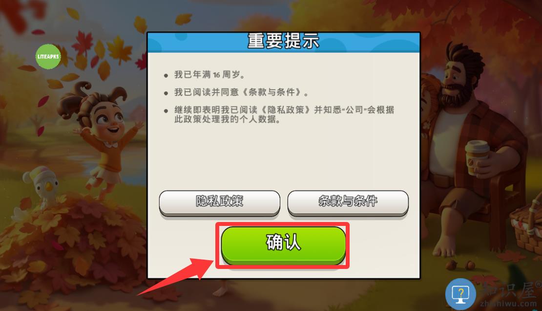 1、点击红色框框里的确认并进入游戏。
