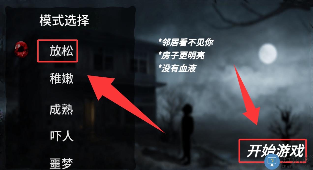 3、刚玩的新手模式选择放松,然后点击开始游戏。