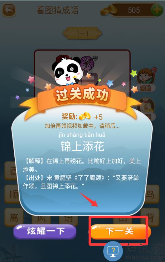 1、进入游戏第一关,看图猜成语。
