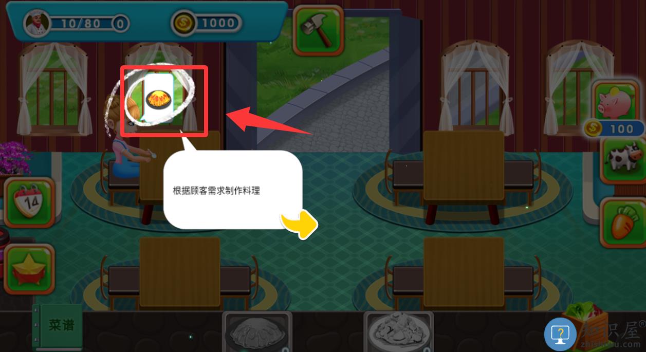 3、点击红色框框里的图标根据顾客需求制作料理。