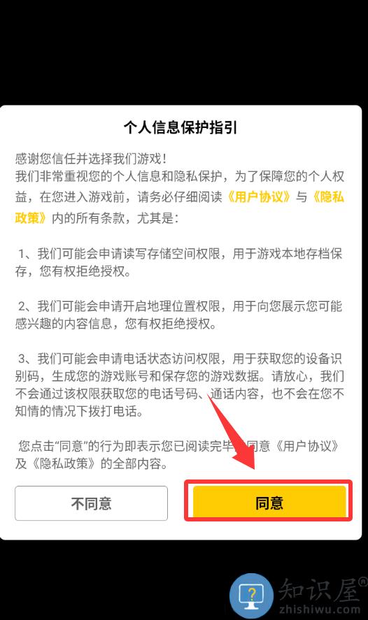 1、点击个人信息保护指引里的同意并继续。