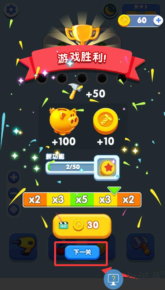 3、恭喜你通关了,点击红色框框里的下一个继续。