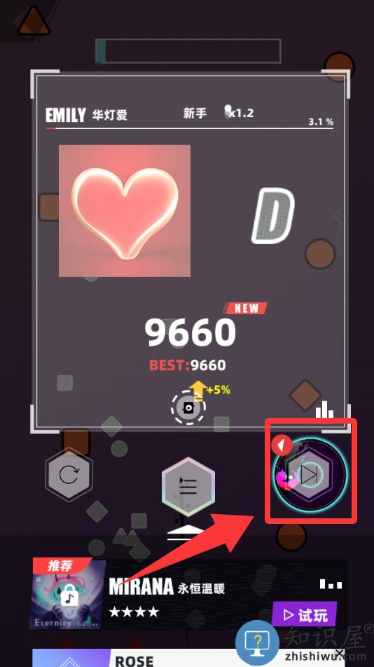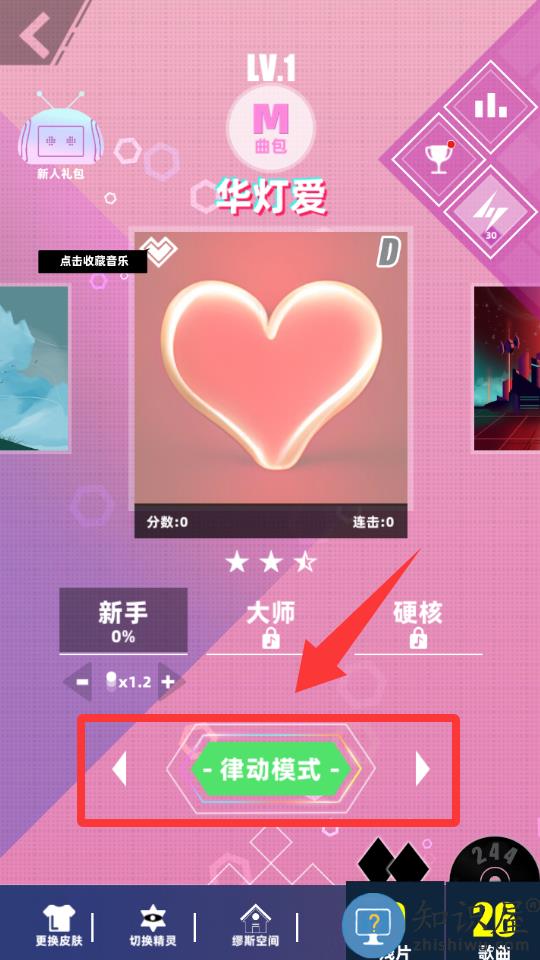 1、进入游戏点击红色框框里的律动模式然后开始游戏。