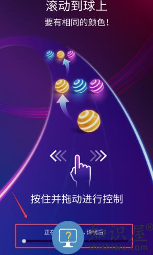 3、按住并拖动屏幕,控制球体滚动到同色球上。