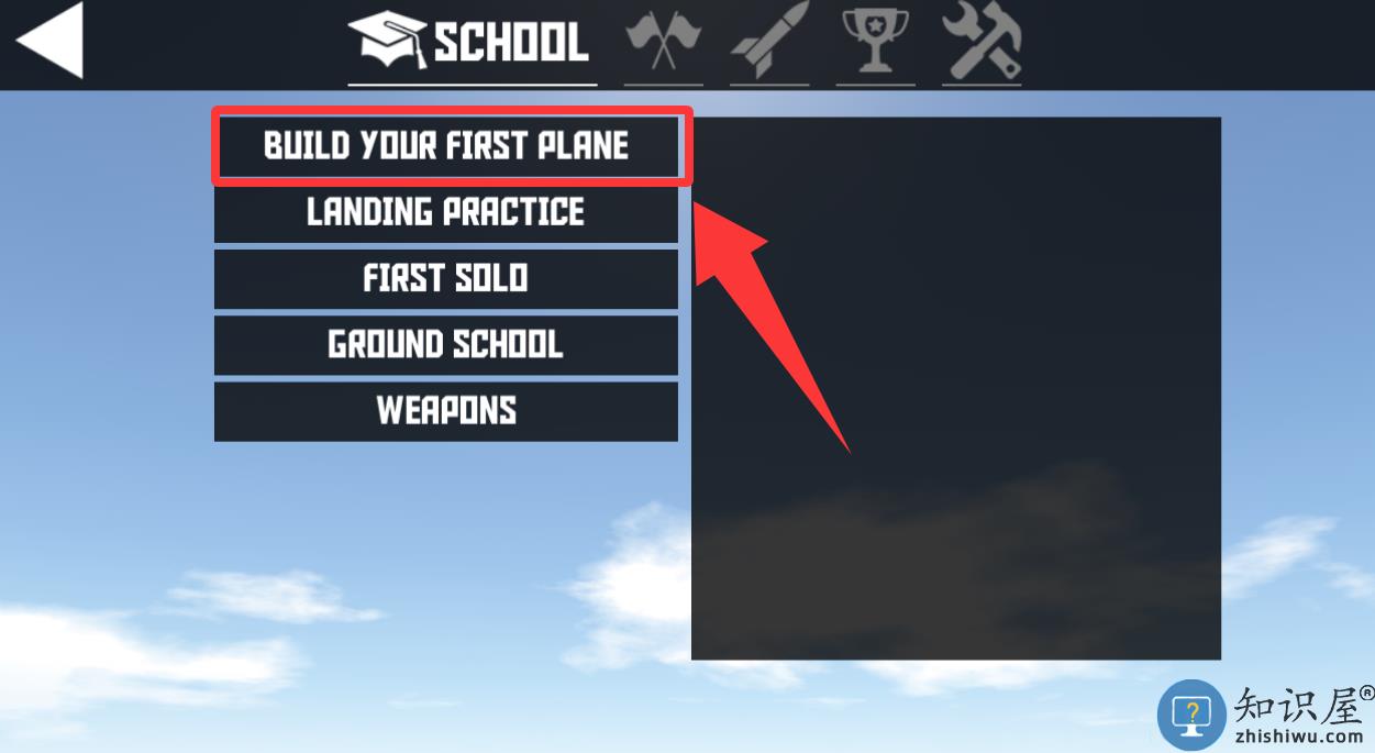 2、点击红色框框里的建造你的第一架飞机。